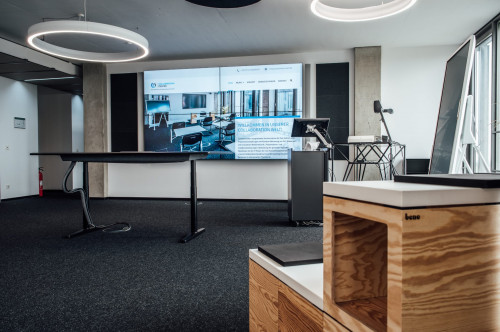Das Collaboration Center ist zentraler Informations- und Erlebnisstandort rund um die Themengebiete: Medientechnik, Präsentations- und Kollaborationslösungen und fungiert darüber hinaus als Schnittstelle zur IT-Infrastruktur und passenden IT-Services. Wir bieten Ihnen mehr als bloße Fläche. Mit den zahlreichen technischen Möglichkeiten und verschiedenen Raumkonzepten, machen wir Ihre Veranstaltung zu einem Erlebnis für Sie und Ihre Gäste!